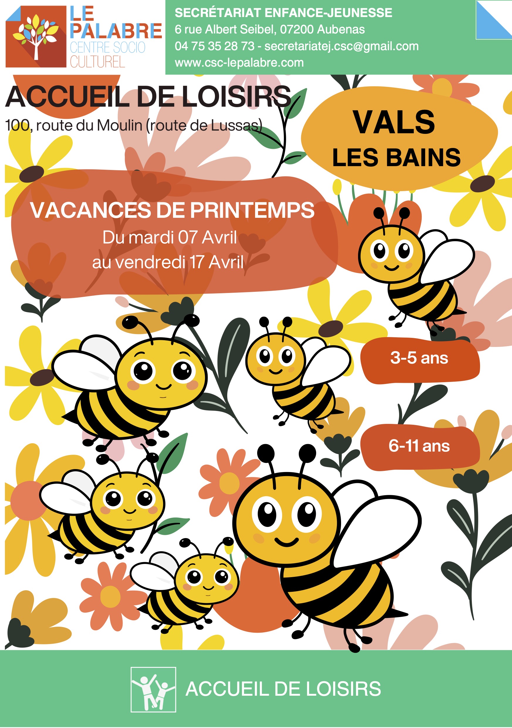 Le centre de loisirs de Vals-les-Bains ouvrira ses portes pour les vacances de Printemps du 7 au 17 avril pour les enfants de 3 à 11 ans !