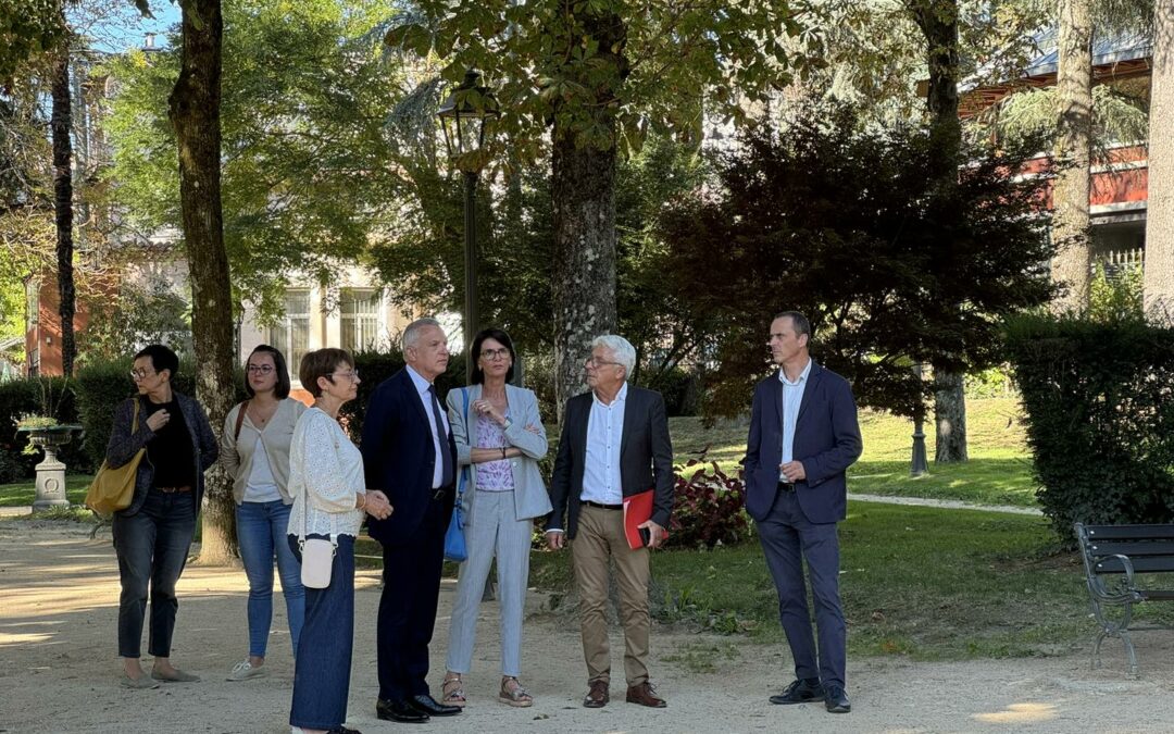 Michel Ceysson, maire de Vals-les-Bains, Anne Ventalon, sénatrice de l’Ardèche, Françoise Chasson, première adjointe, Léa Blanc, directrice générale des services de la ville, et Adeline Boillon, directrice du SITHERE, ont accueilli M. Benoit Trevisani, préfet de l’Ardèche pour une visite de la commune, la semaine dernière.